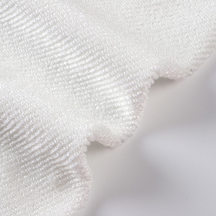 Ткань доступна по ширине 170, 190 и 210 см или настраивается в соответствии с вашими конкретными потребностями. Его высота кучи варьируется от 2,5 до 3 мм, предлагая мягкую плюшевую текстуру, которая является удобной и практичной. Мы используем вязаную технику для гибкой и устойчивой структуры, что делает ее идеальным для различных приложений.